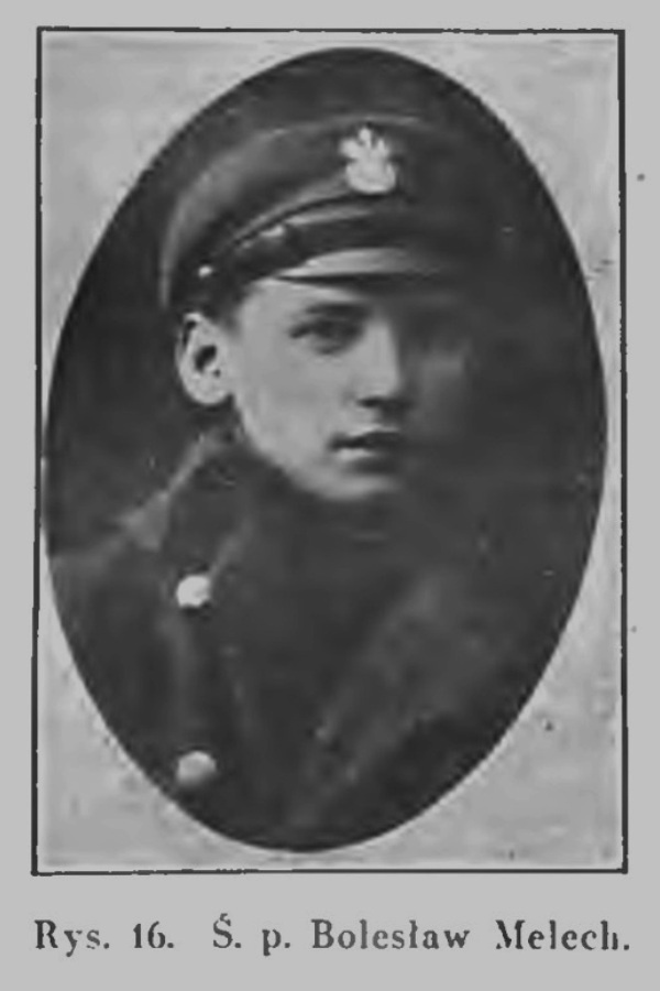 Mogiła szer. Bolesława Melecha znajduje się po lewej stronie, w rogu cmentarza. Bolesław Melech, ur. 08.01.1903 r., był drużynowym pińskiej drużyny harcerskiej. Służył w 2 kompanii 205 ochotniczego pułku piechoty. Poległ pod Przewodowem 11.08.1920 r.