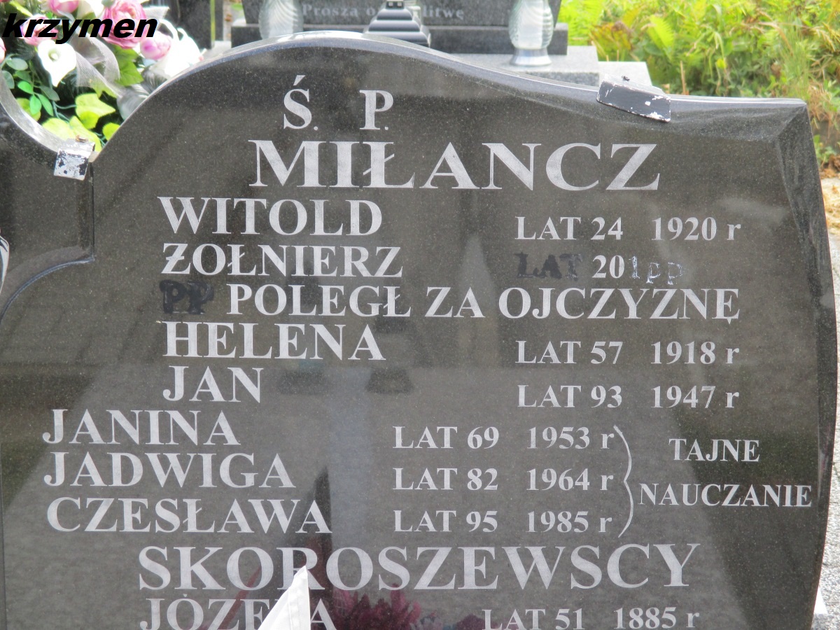 Witold Miłancz pochodził ze Strzegocina. Poległ 04.08.1920 pod Komorowem k. Ostrowi.