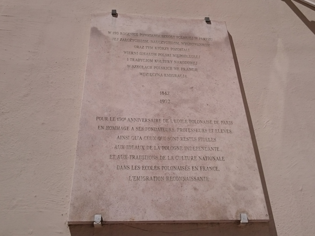 Szkoła Polska Narodowa - École Polonaise – została założona w 1842 r. przez byłych żołnierzy powstania listopadowego (m.in. gen. Józefa Dwernickiego) i była utrzymywana ze składek i darowizn. Początkowo jej siedziba znajdowała się w podparyskim Châtillon-sous-Bagneux. W latach 1844-1874 szkoła działała we własnym budynku na Boulevard des Batignolles1), a następnie, aż do jej zamknięcia w 1922 r., przy rue Lamandé.
