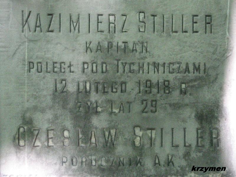 Napis (prawdopodobnie symboliczny) ku czci kpt. Kazimierza Stillera, umieszczony na grobie rodzinnym (Stare Powązki w Warszawie).