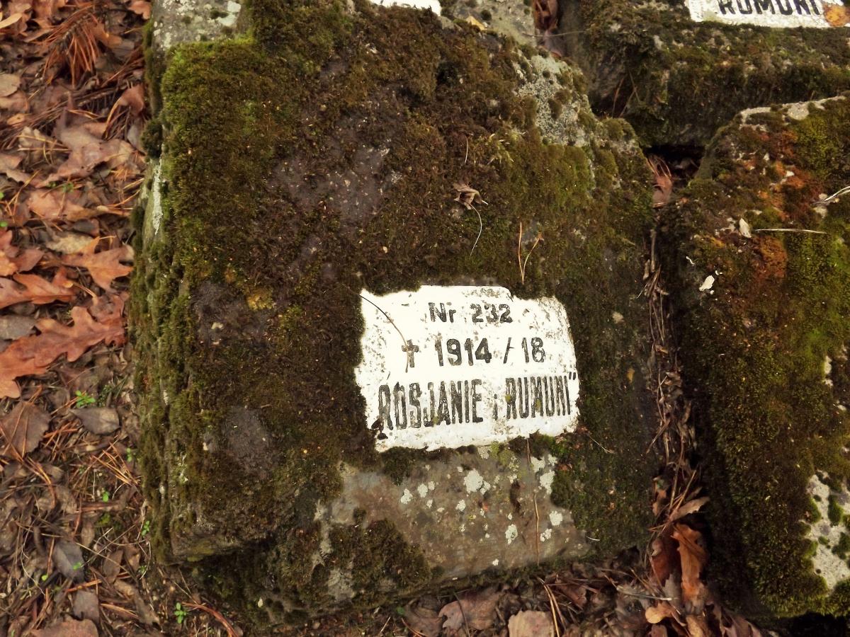 "CMENTARZ JEŃCÓW WOJENNYCH • Z LAT 1914-1918 •• Na obszarze 1 ha w 383 mogiłach zbiorowych • i 15 pojedyńczych spoczywa 3.844 Rosjan Rumunów • Polaków i Niemców z obozu jenieckiego, założonego • przez władze pruskie. • Na obelisku napis w 4 językach o treści: • „Wojenni jeńcy Polacy swoim Towarzyszom 1914-1918“. •• CZEŚĆ ICH PAMIĘCI • Upamiętnienie odnowiono • we wrześniu 1990r."