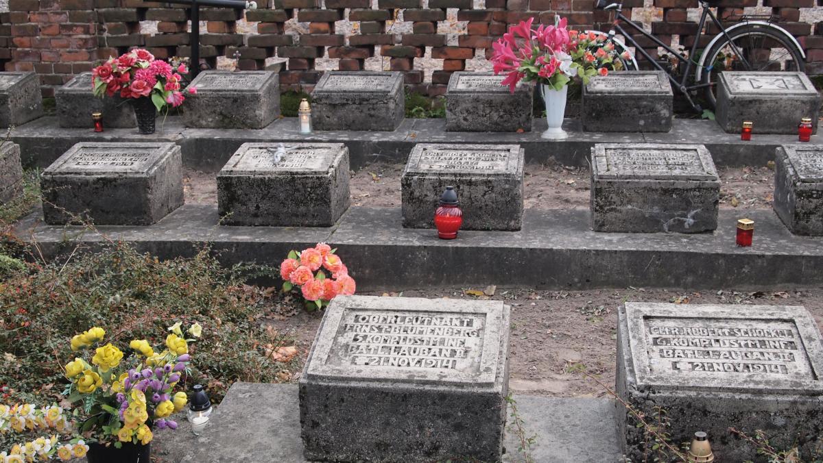 OBERLEUTNANT ERNST BLUMENBERG, 5. KOMP. LDSTM. INF. BATL. LAUBAN II, † 21.NOV.1914 GEFR. ROBERT SCHOCKEL, 6. KOMP. LDSTM. INF. BATL. LAUBAN II, † 21.NOV.1914 UNTEROFFZ. PAUL WERSIG, 5. KOMP. LDSTM. INF. BATL. LAUBAN II, † 21.NOV.1914 LDSTM. ROBERT GERBER, 6. KOMP. LDSTM. INF. BATL. LAUBAN II, † 19.NOV.1914 LDSTM. KARL RUNGE, 5. KOMP. LDSTM. INF. BATL. LAUBAN II, † 21.NOV.1914 UNTEROFFZ. KUNERT, 3. BATT. FELD. ARTL. RGT. 17, † 29.NOV.1914 WEHRM. PAUL TRAPP, 4. KOMP. INF. RGT. 140, † 4.DEZ.1914 WEHRM. PHILIPP VORBOCK, 2. KOMP. INF. RGT. 49, † 30.NOV.1914 LDSTM. KARL SCHICKFLUSS, 4. KOMP. LDSTM. INF. BATL. BRESLAU II, † 21.NOV.1914 LDSTM. JOHANN HERMANN, 4. KOMP. LDSTM. INF. BATL. BRESLAU II, † 21.NOV.1914 LDSTM. ERNST LABITZKE, 4. KOMP. LDSTM. INF. BATL. BRESLAU II, † 21.NOV.1914 GEFR. ERNST HANKE, 1. KOMP. LDSTM. BATL. BRESLAU II, † 24.NOV.1914 LDSTM. GUSTAV GNERLICH, 4. KOMP. LDSTM. INF. BATL. BRESLAU II, † 21.NOV.1914 LDSTM. KARL WEISS, 4. KOMP. LDSTM. INF. BATL. BRESLAU II, † 21.NOV.1914 LDSTM. JOSEF LAUSCH, 4. KOMP. LDSTM. INF. BATL. BRESLAU II, † 21.NOV.1914 LDSTM. JOSEF KANDZIOK, 4. KOMP. LDSTM. INF. BATL. KATTOWITZ, † 22.NOV.1914 RES. PRZEWOSNIAK, 5. KOMP. INF. RGT. 14, † 1.DEZ.1914 WEHRM. WILHELM BLENN, 3. KOMP. INF. RGT. 140, † 4.DEZ.1914 LDSTM. AUGUST HANTKE, 4. KOMP. LDSTM. INF. BATL. BRESLAU II, † 21.NOV.1914 LDSTM. PETER SAREMBE, 4. KOMP. LDSTM. INF. BATL. BRESLAU II, † 21.NOV.1914 FELDW. WILHELM WEIGERT, 4. KOMP. LDSTM. INF. BATL. BRESLAU II, † 21.NOV.1914