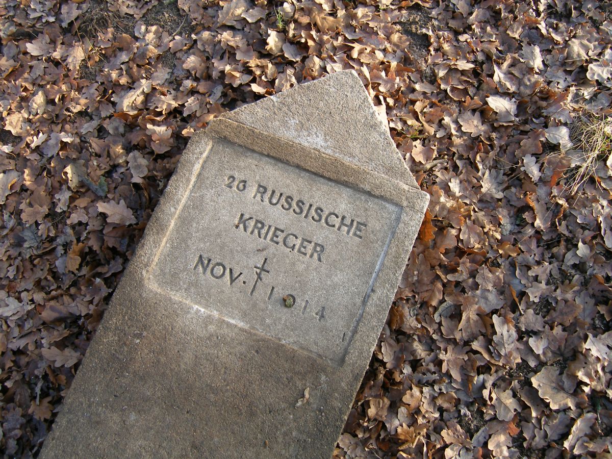 Pochowani są tu żołnierze polegli głównie podczas tzw. "operacji łódzkiej", w listopadzie i grudniu 1914 roku. Według różnych źródeł spoczywa tu od 2 do ponad 9 tysięcy żołnierzy armii niemieckiej i rosyjskiej. Prawdopodobnie w wyniku komasacji mogił przeprowadzanych w okresie międzywojennym XX wieku, przeniesiono tutaj poległych m.in. z likwidowanych obiektów w Olechowie, Natolinie, Andrespolu, Jarostach i Skoszewach. 29 listopada 2006 roku na cmentarzu pochowano, odnalezione w lasach niedaleko Dąbrowy, szczątki dziesięciu żołnierzy armii rosyjskiej poległych w listopadzie 1914 roku.