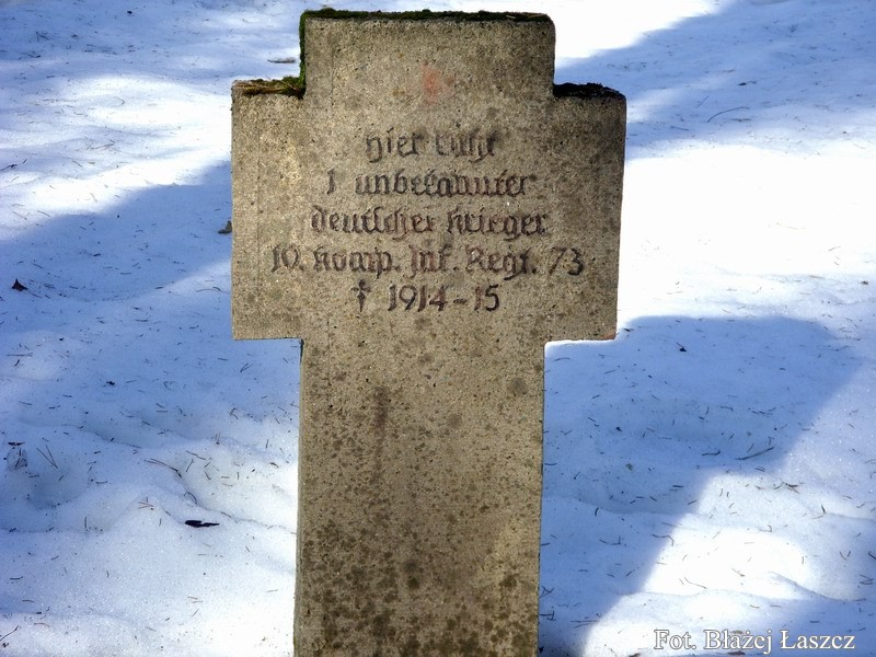 Zlokalizowana na cmentarzu wiejskim. Jest miejscem spoczynku 1 nieznanego żołnierza armii niemieckiej z 10. kompanii Inf. Regt. 73 (opracowanie M. Dehnena wskazuje Landw. Inf. Regt. 71) oraz 10 nieznanych żołnierzy armii rosyjskiej.