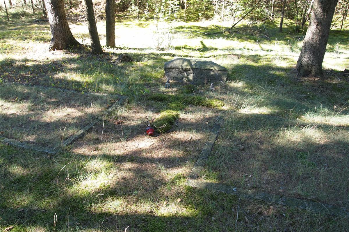 Usytuowany na północnym skraju wsi, w lesie, w pobliżu polnej drogi do wsi Róklas. Na planie prostokąta o wymiarach 7x17 m. Wzdłuż linii granic obsadzony świerkami. Wewnątrz dwie zbiorowe mogiły, otoczone krawężnikami z granitowej kostki. Pomiędzy nimi, przy linii granicy, głaz — pomnik z wykutym napisem: