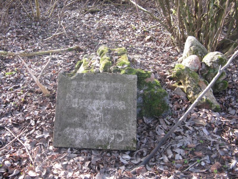 Tu spoczywa niemiecki saper odnaleziony w marcu 1915 r., został zamordowany przez Rosjan w lutym