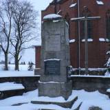 Poniżej przytwierdzona współcześnie granitowa tablica z napisem: "DENKMAL FÜR GEFALLENEN 1914-1918 POMNIK KU PAMIĘCI POLEGŁYCH W WOJNIE". Na bocznych ścianach tablice z nazwiskami poległych oraz kolejna współczesna, granitowa tablica: