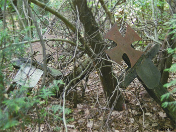Zlokalizowana na cmentarzu, po wschodniej stronie szosy, za leśniczówką, po prawej stronie leśnej drogi prowadzącej w stronę torów. Mogiły wojenne zajmują północno-wschodni narożnik cmentarza. Zachowane cztery drewniane krzyże zwieńczone krzyżem maltańskim. Pochowano tu prawdopodobnie cywilne ofiary wojny. Stan zachowania dostateczny.