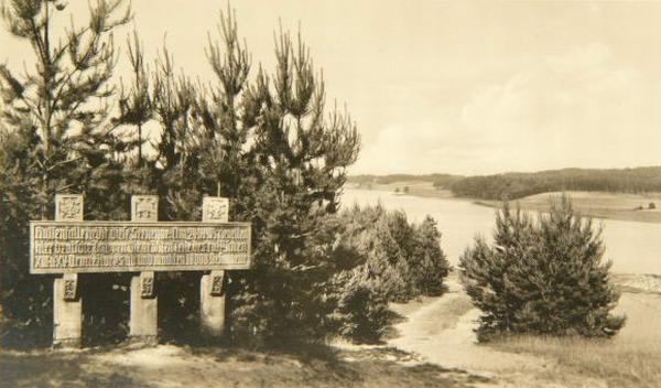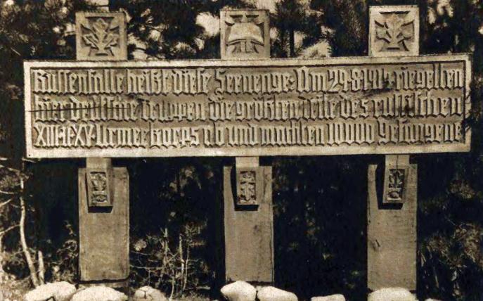 "Russenfalle heißt diese Seenenge: Am 24.8.1914 riegellen • hier deutsche Truppen die größten Teile des russischen • XIII-II-XV-Armeekorps ab und machten 10 000 Gefangene".