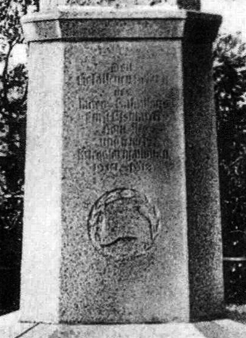 "1914 - 1918 • Ihren im Weltkriege gefallenen • Helden in unauslöschlicher • Dankbarkeit die Kameraden • 1. Pomm. Feldartillerie-Rgts. Nr. 2".