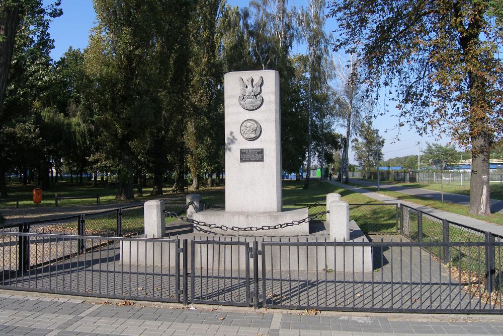Zlokalizowany w centrum miejscowości, przy ulicy Kościelnej. Poświęcony mieszkańcom poległym podczas walk o niepodległość. Pomnik ma formę pionowej płyty ze sztucznego kamienia stojącej na niewielkim podwyższeniu, otoczonej słupkami złączonymi kutym łańcuchem. Całość obramiona niewysokim płotem z metalowych prętów i siatki. Od strony frontowej wizerunek orła białego, płaskorzeźba marszałka Józefa Piłsudskiego oraz dwie tablice (umieszczone ma pomniku ok. 1930r.) z listą poległych mieszkańców i inskrypcją: