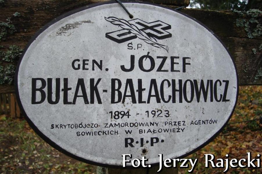 "GEN. JÓZEF • BUŁAK-BAŁACHOWICZ • 1894 - 1923 • SKRYTOBÓJCZO ZAMORDOWANY PRZEZ AGENTÓW • SOWIECKICH W BIAŁOWIEŻY • R.I.P."