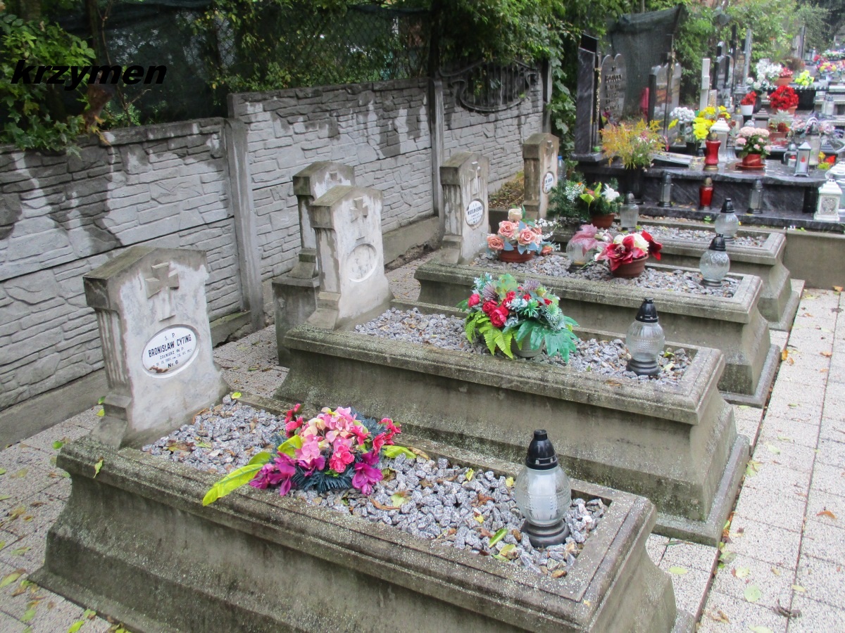 Lista pochowanych sporządzona na podstawie danych spisanych z tabliczek oraz z nieistniejącego już pomnika wzniesionego przez p. Henryka Holwega. W nawiasach kwadratowych numery emaliowanych tabliczek.