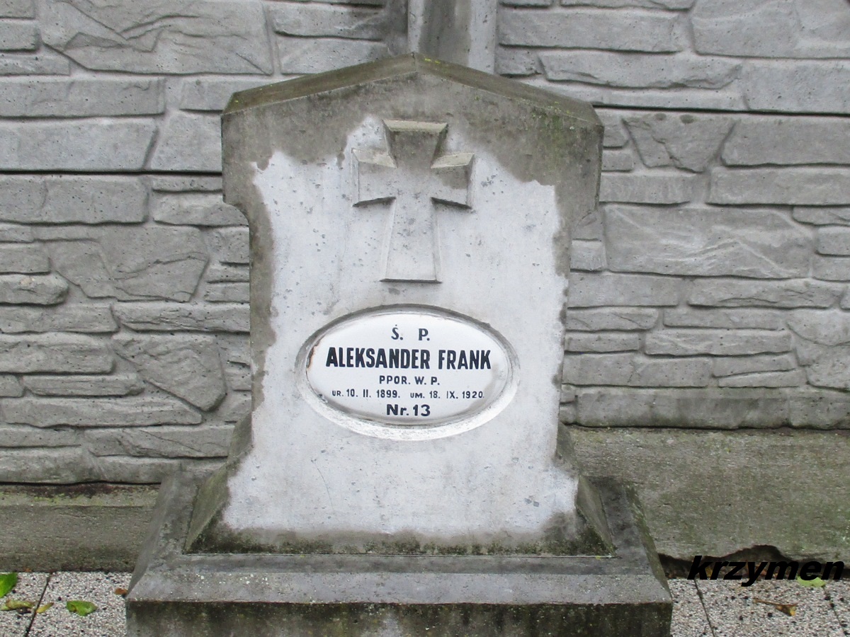Bronisław CYTING, żołnierz WP, 19.09.1901 - 20.07.1921 [Nr. 6] Władysław REKOWSKI żołnierz WP, 19.09.1900 - 24.07.1921 [Nr. 7] Piotr NIEWIAROWSKI, żołnierz WP, zm. ? [Nr. 8] Wincenty GAWLIKOWSKI, żołnierz WP, zm. ? [Nr. 9] Bolesław ZIEMSKI, żołnierz WP, 27.03.1900 - 20.08.1921 [Nr. 11] Leon URBAN, żołnierz WP, zm. ? [Nr. 12] Aleksander FRANK, porucznik WP, 10.02.1899 – 18.09.1920 [Nr. 13] Dane spisane z tablicy umieszczonej na nieistniejącym pomniku Marcin MARYNOWSKI, porucznik WP, l. 21 Jakub KUBISIAK, plutonowy WP, l. 21 (Nr. 5) Jan DOMINIKOWSKI, żołnierz WP, l. 19 Józef KRUPA, żołnierz WP, l. 19 Bronisław PAPKE, żołnierz WP, l. 20